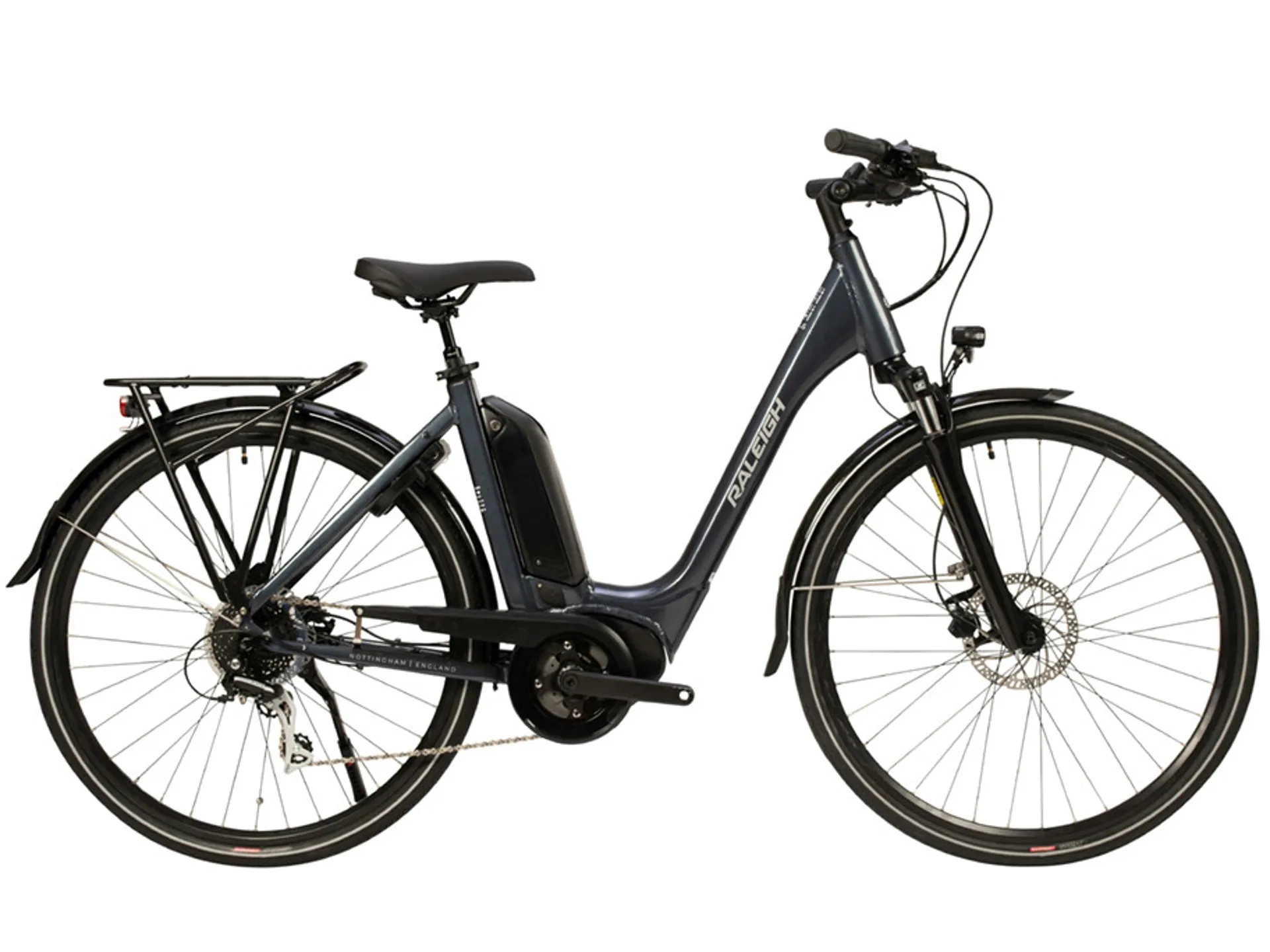 Equipped with front and rear lights that run from the e-bike’s main battery, the Motus Tour helps keep you visible on the roads and illuminate unlit paths. The rear light has an accelerometer built in, and automatically shines brighter when you decelerate, helping other people know that you’re slowing down. Full mudguards, a pannier rack and a kickstand finish it off to make the bike fantastic for commuting, leisure riding or touring.